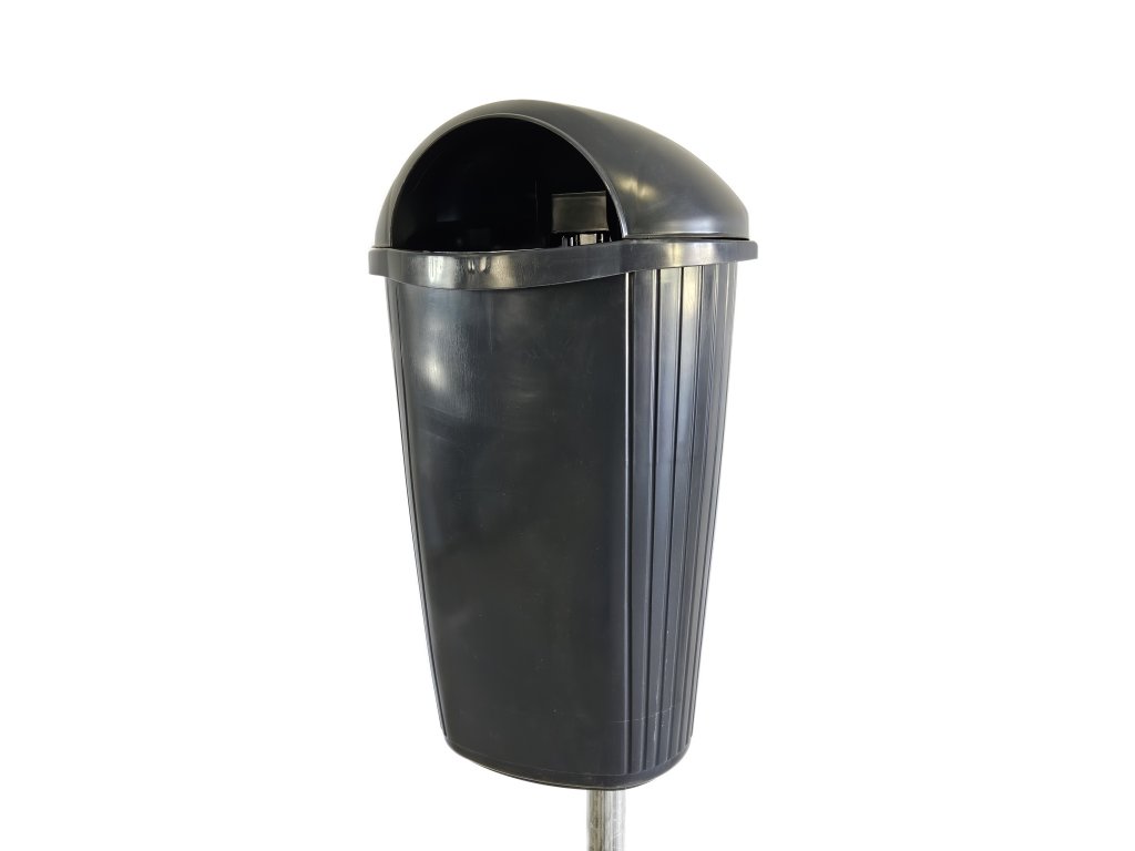 Plastový odpadkový koš typ 003 pro svojí nízkou cenu získal nemalou oblibu již v řadě měst a obcí. Koš lze připevnit na zeď, kovový sloupek či dopravní značku. Manipulační klička se zámkem umožňuje nádobu vysypat a současně chrání před nežádoucí manipulací.